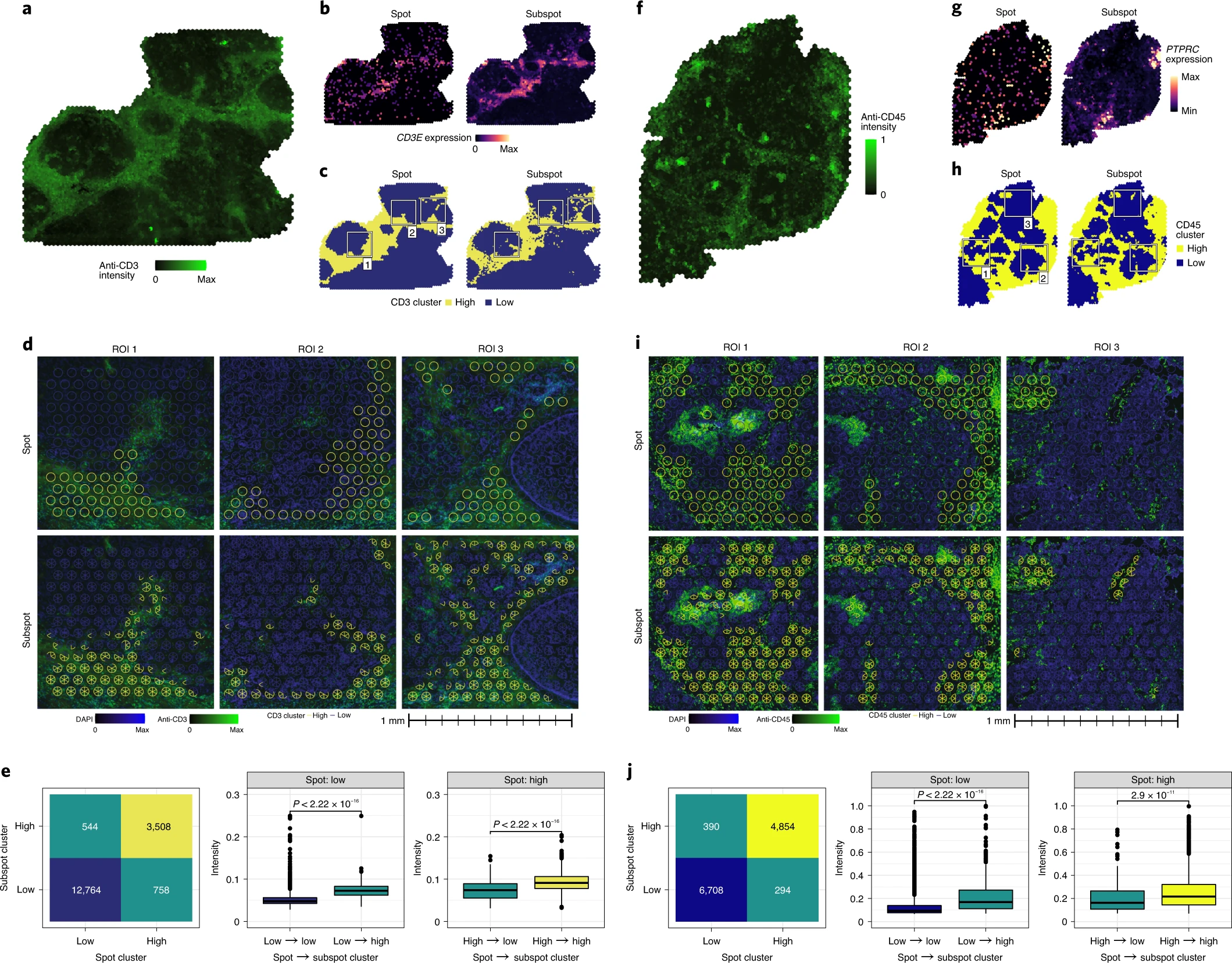 Studies performed with the Spatial Transcriptomics (ST) platform and the improved Visium platform have already generated insights into diverse areas. The primary technological limitation of these spatial gene expression platforms is resolution, with the unit of observation being spots that are 100 μm in diameter on the ST platform and 55 μm in diameter on the Visium platform. As such, the number of cells within a spot may range from one to 30 on the Visium platform and up to 200 on the older ST platform, depending on the biological tissue.