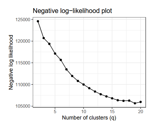 通过绘制 负对数似然曲线 (NLL Curve),我们可以选择一个合理的聚类数量。以下是具体方法: