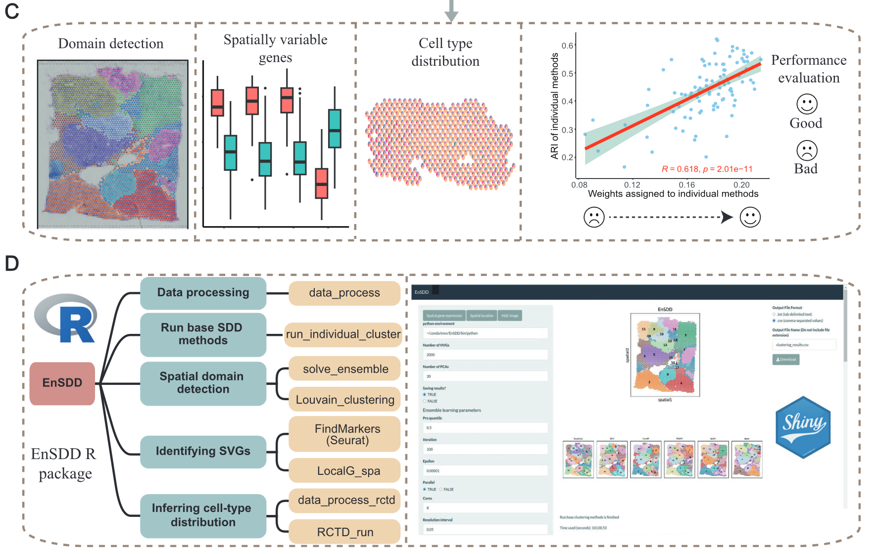 - EnSDD 比单一方法更稳定,可自动评估不同方法的贡献,适用于 不同类型的组织结构。