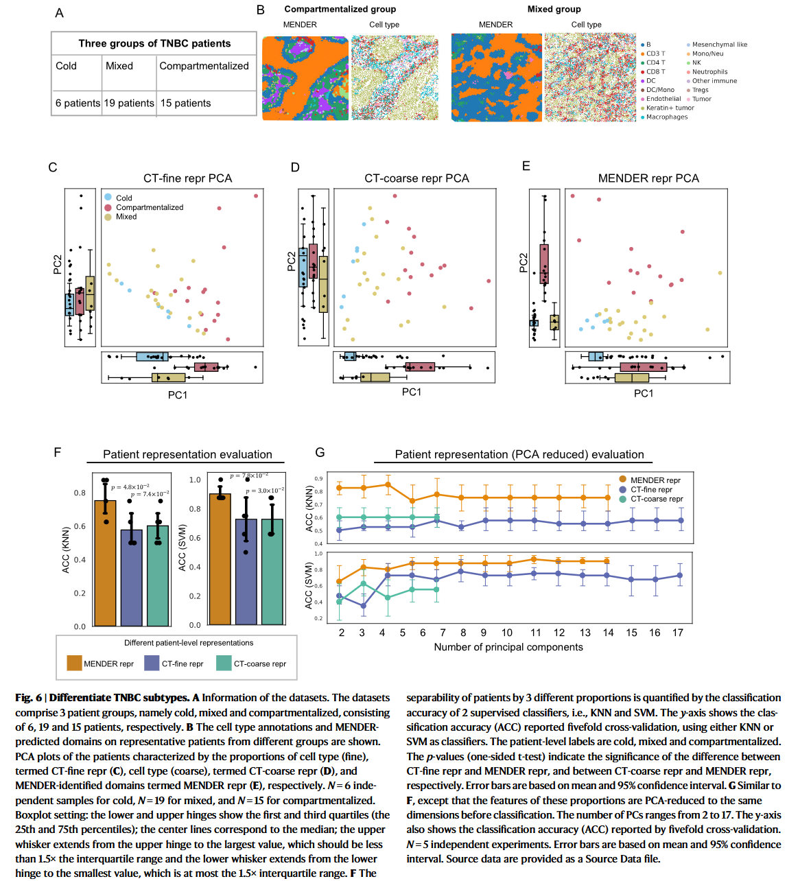 - MENDER's discriminative power enables the differentiation of breast cancer patiant subtypes obsured by single-cell analysis