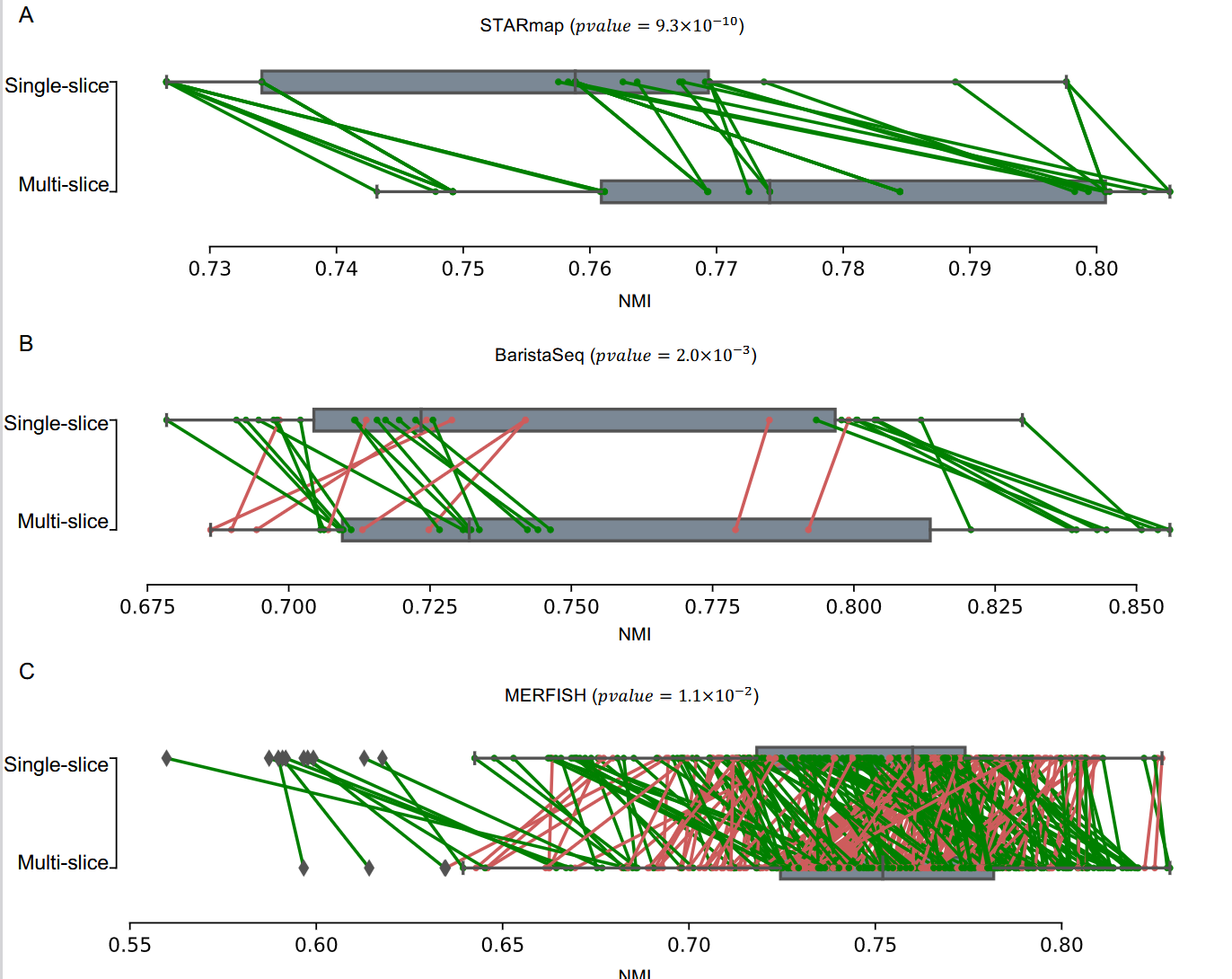 说白了这玩意还是把基因的信息和 spatial 的基因结合并凸显它们的特征然后利用得到的信息进行聚类,只不过把范围扩大到了多 slice 的情况。