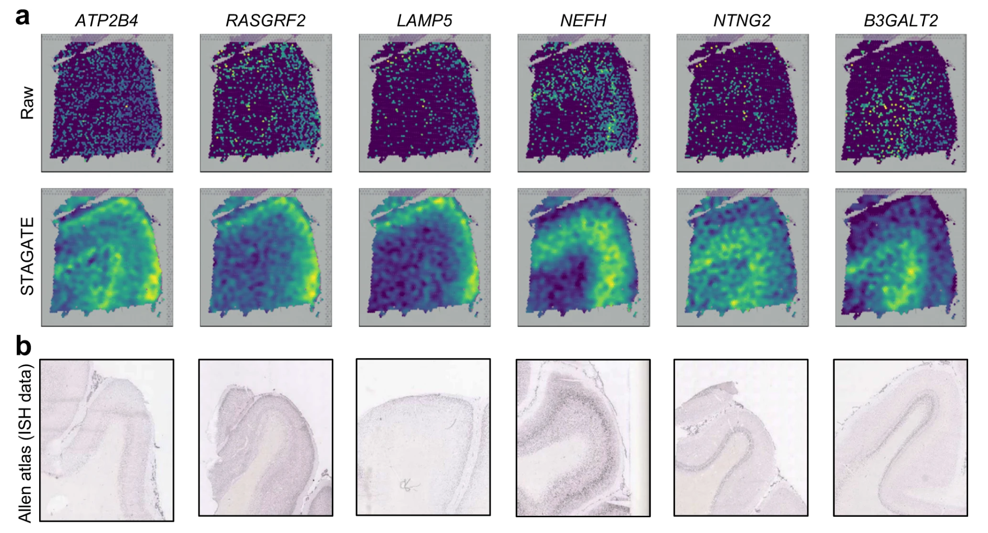 Collectively, these results demonstrated the ability of STAGATE to reduce noises and enhance spatial expression patterns.