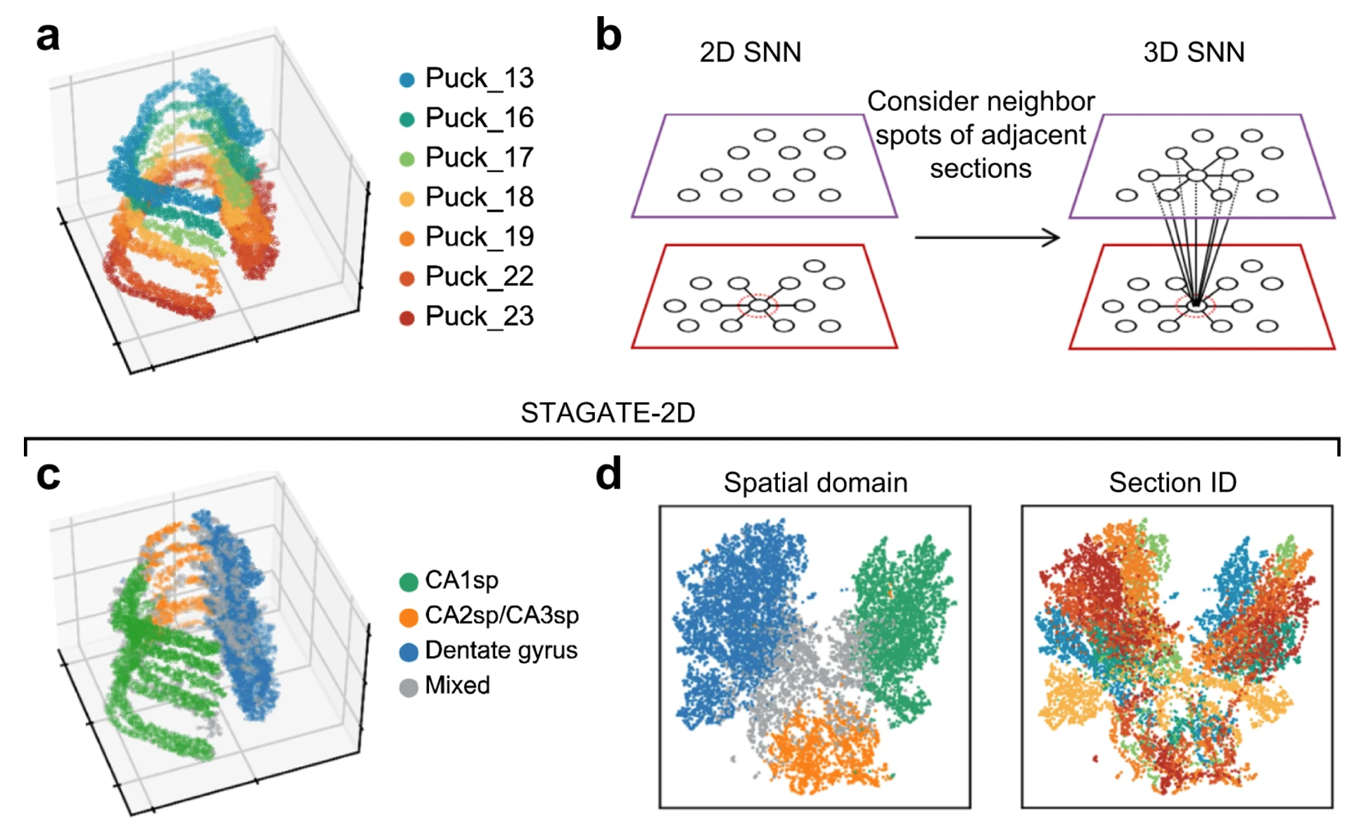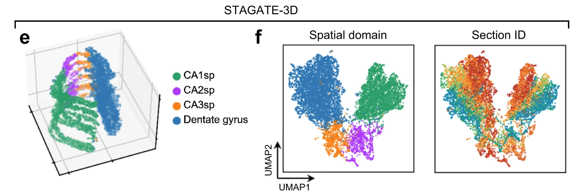 由于批次效应,STAGATE 未能成功识别出 CA2sp 区域