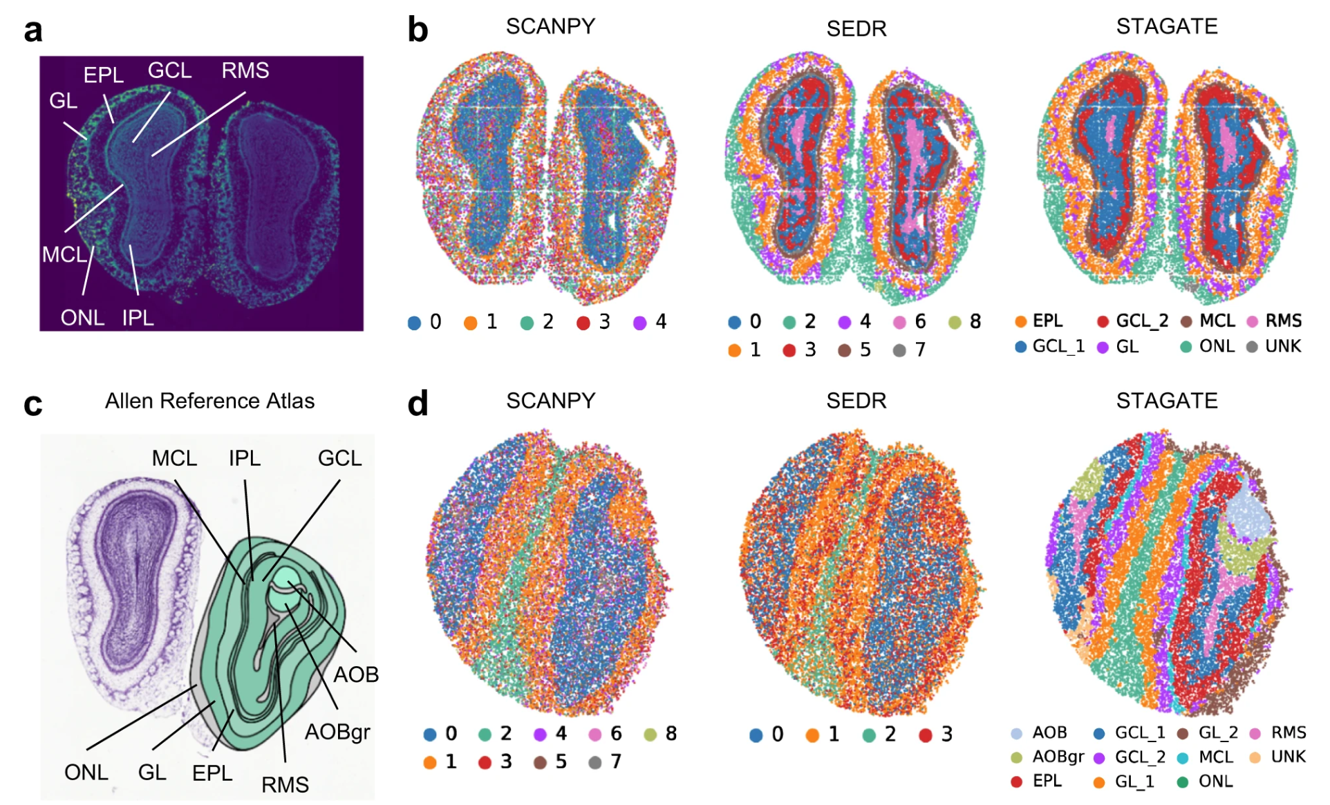 The performance of STAGATE for identifying tissue structures on the mouse olfactory bulb: