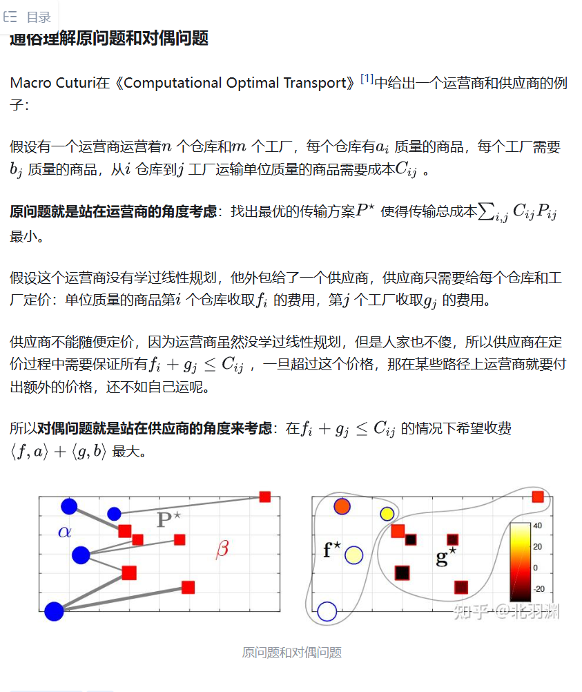 为什么会出现对偶形式(带 $g(x)+f(y) \le c(x,y)$ 的公式)呢?这是 **拉格朗日对偶**的典型应用。思路分几步: