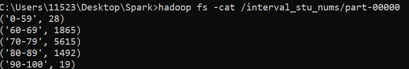 # Spark1 2 3 4 5 6 7 8 9 10 11 start-dfs hadoop fs -mkdir /spark hadoop fs -put C:\Users\11523\Desktop\Spark\grades.txt /spark pyspark spark-submit Spark.py hadoop fs -cat /interval_stu_nums/part-00000 hadoop fs -cat /avg_grades/part-00000