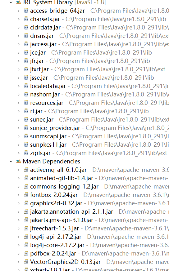 <groupId>com.xidian.dc.mq</groupId> <artifactId>mq-topic</artifactId> <version>1.0-SNAPSHOT</version> <dependencies> <!-- https://mvnrepository.com/artifact/org.apache.activemq/activemq-all --> <dependency> <groupId>org.knowm.xchart</groupId> <artifactId>xchart</artifactId> <version>3.8.1</version> </dependency> <dependency> <groupId>org.jfree</groupId> <artifactId>jfreechart</artifactId> <version>1.5.3</version> </dependency> <dependency> <groupId>jakarta.jms</groupId> <artifactId>jakarta.jms-api</artifactId> <version>3.1.0</version> </dependency> <dependency> <groupId>org.apache.activemq</groupId> <artifactId>activemq-all</artifactId> <version>6.1.0</version> </dependency> <dependency> <groupId>org.apache.logging.log4j</groupId> <artifactId>log4j-api</artifactId> <version>2.17.2</version> </dependency> <dependency> <groupId>org.apache.logging.log4j</groupId> <artifactId>log4j-core</artifactId> <version>2.17.2</version> </dependency> </dependencies>