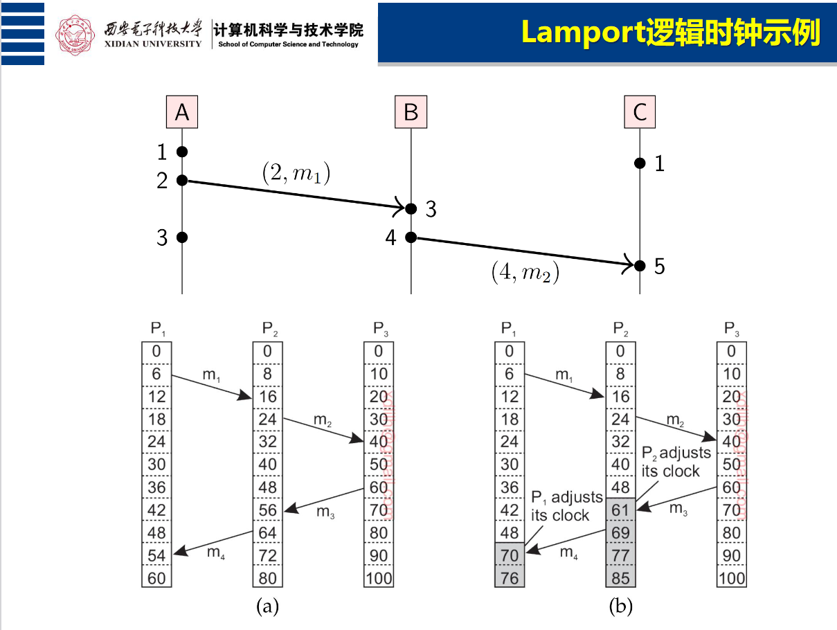 当客户端收到一条消息就将自己的时间戳与该信息的时间戳相比较,更新为更大的值实现因果关系的同一。