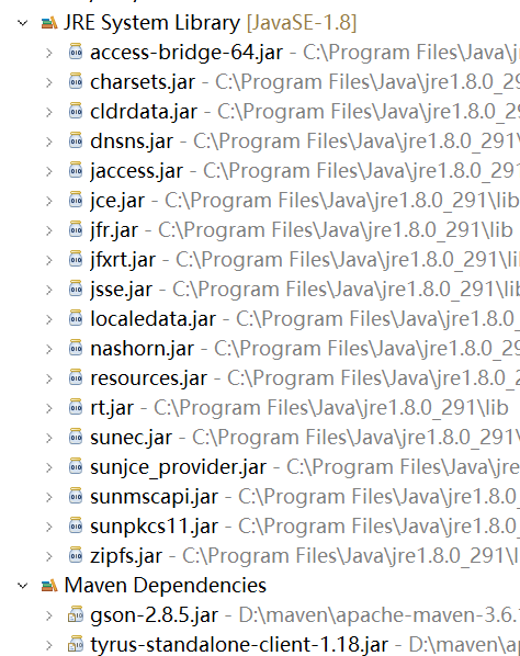 # pom 环境1 2 3 4 5 6 7 8 9 10 11 12 13 14 15 16 17 18 19 20 21 22 23 24 25 <project xmlns="http://maven.apache.org/POM/4.0.0" xmlns:xsi="http://www.w3.org/2001/XMLSchema-instance" xsi:schemaLocation="http://maven.apache.org/POM/4.0.0 https://maven.apache.org/xsd/maven-4.0.0.xsd"> <modelVersion>4.0.0</modelVersion> <groupId>com.ls</groupId> <artifactId>p2psystem</artifactId> <version>0.0.1-SNAPSHOT</version> <dependencies> <dependency> <groupId>com.google.code.gson</groupId> <artifactId>gson</artifactId> <version>2.8.5</version> </dependency> <dependency> <groupId>org.glassfish.tyrus.bundles</groupId> <artifactId>tyrus-standalone-client</artifactId> <version>1.18</version> </dependency> </dependencies> </project>