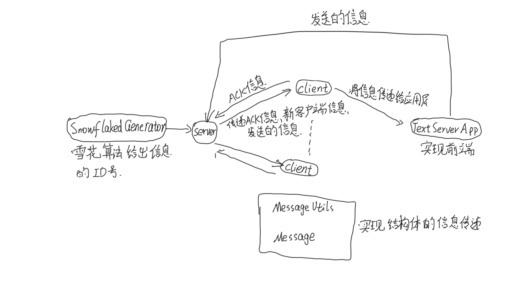 采用一个服务端,多个客户端的方法,当客户端收到服务端传来的信息时,判断该信息属于 ACK 信息、新加入客户端信息还是 message 消息。