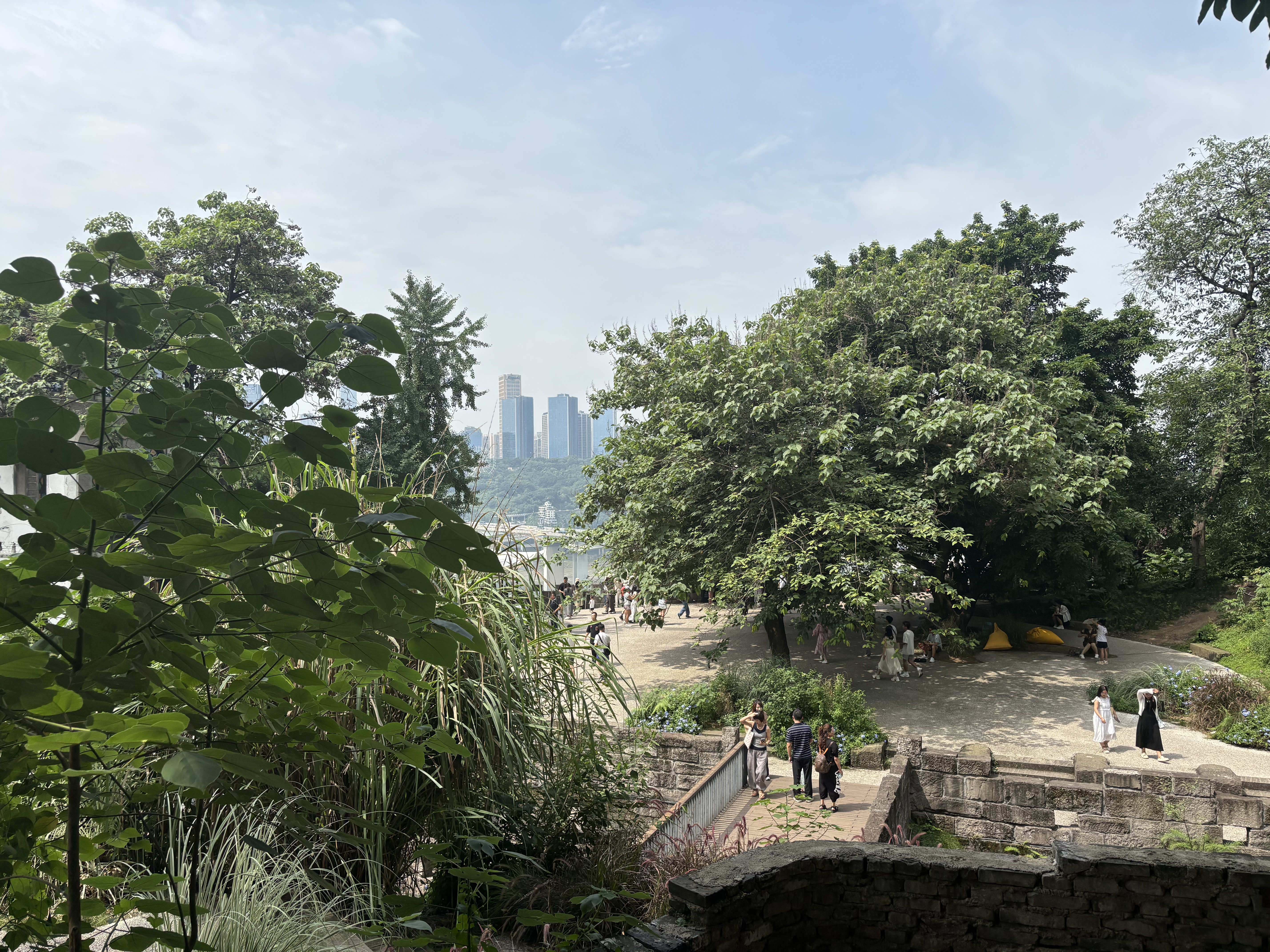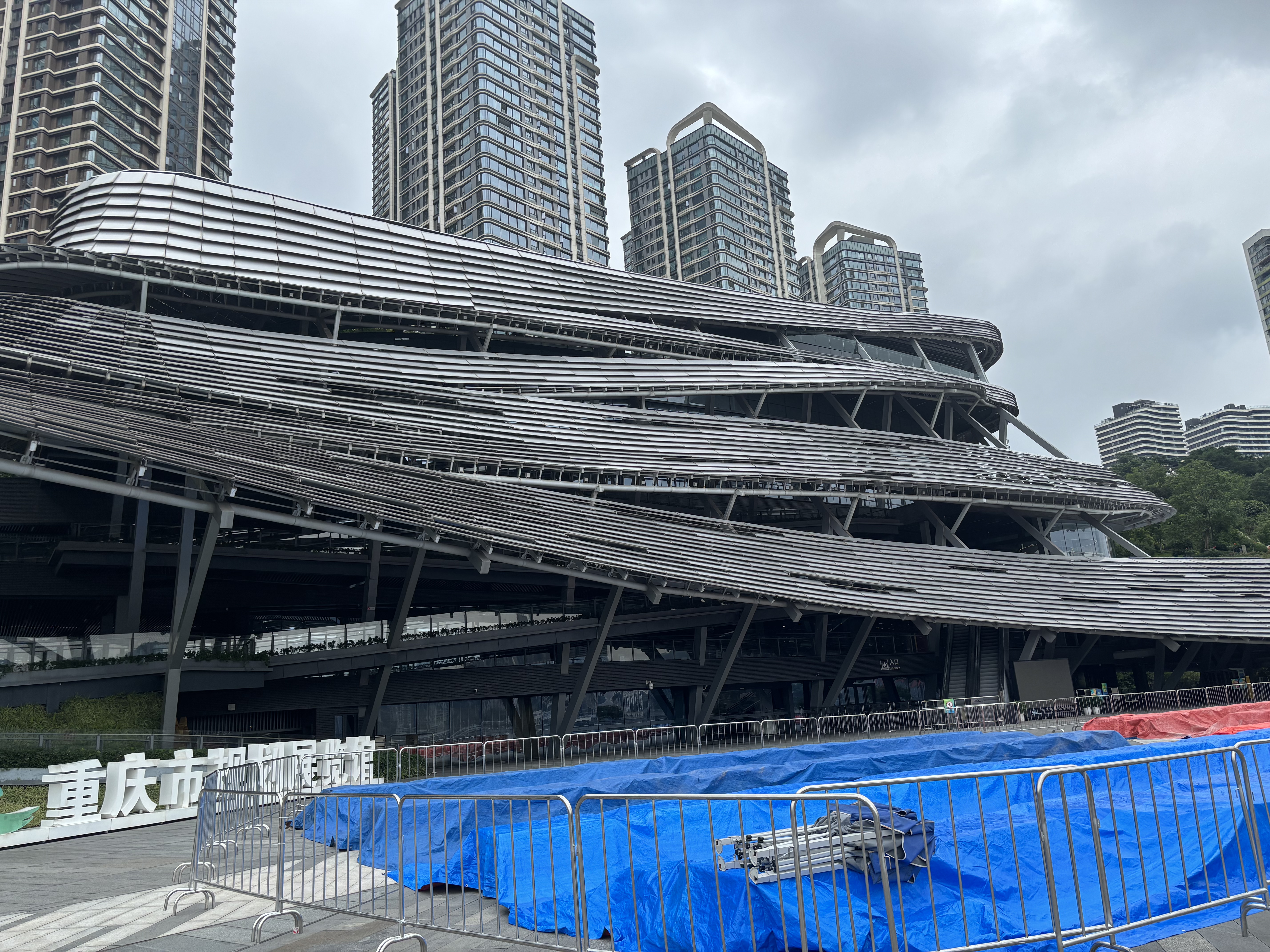 抵达朝天门便能看到许多旅行团的,或者是网红在拍照,其实说白了就是一个平台,隔江望过去便是城市规划展览馆,临江看风景时意外还看到许多工人在下面借着建筑遮挡阳光在午睡。
