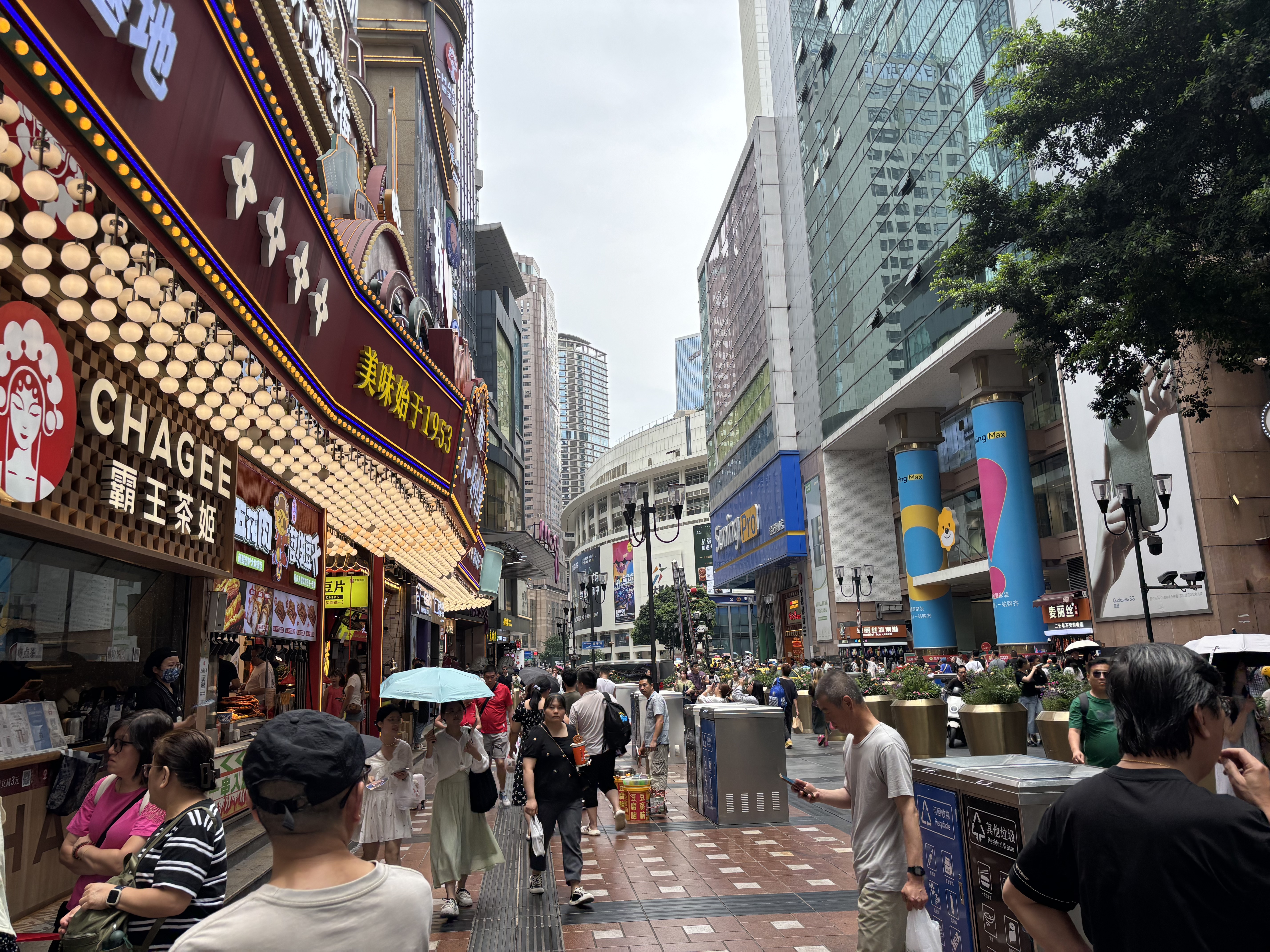 吃完饭后我们去了解放碑,打算中午吃点小吃。又试了一下小汤圆,味道确实不错,有一种把冰粉换成汤圆的感觉,但是总归来说,感觉口味对我来说还是淡了。然后吃了一下这里的鬼包子,说是鬼包子其实就是小笼包,这个名字也是让人望而生畏,但包子尝起来也是很不错,肉馅是颗粒样的,可惜不能混装,只能一笼一笼的买。