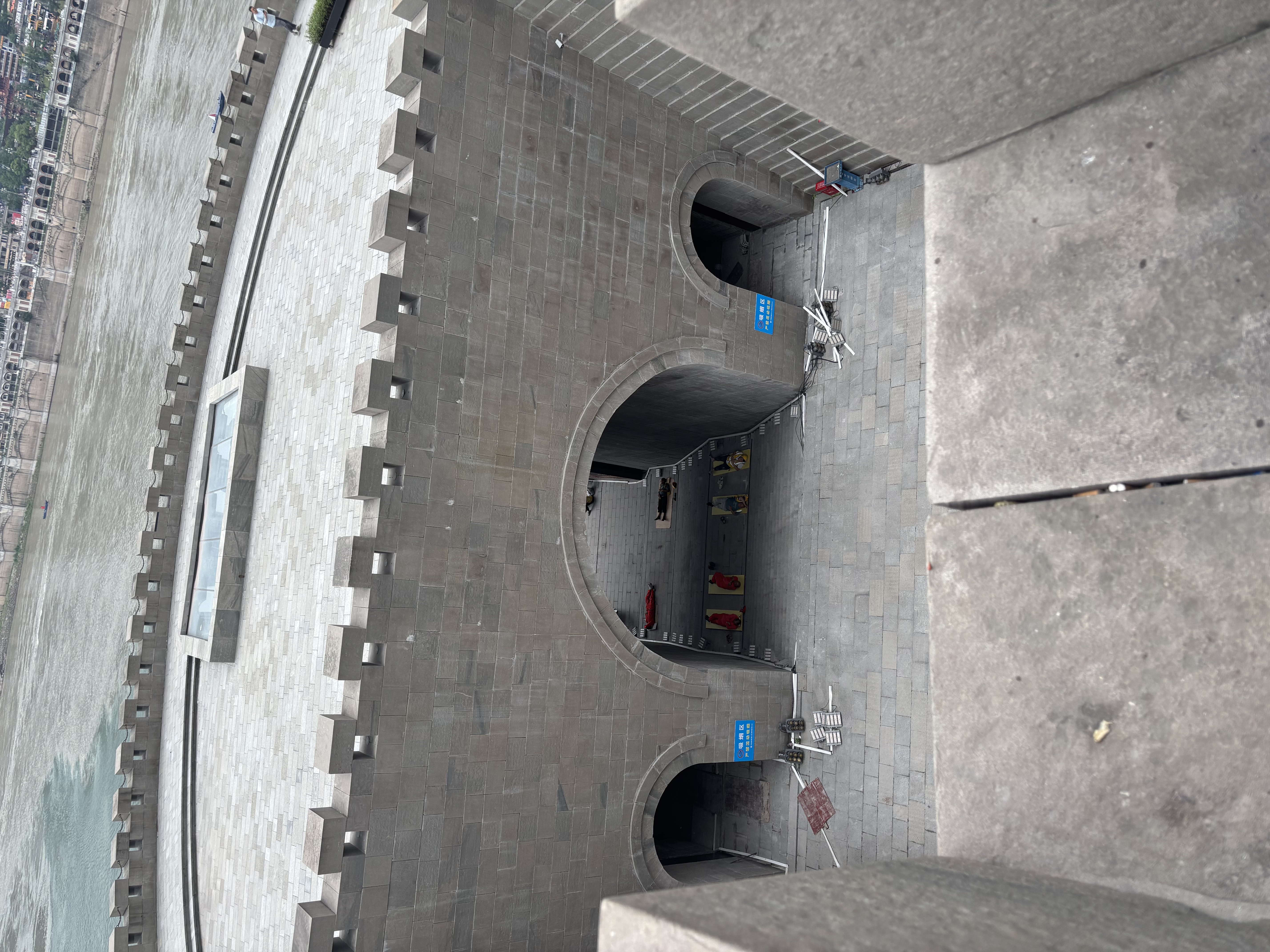 龙门浩说实话没什么转的,也就是可能是我来的比较早的原因,商家也没有开门。说实话,我都不太明白龙门浩怎么也算个景点,倒是能看到许多艺人来这里打卡的照片,摆在路旁作为宣传。倒是龙门浩与一座桥是连在一起的,乘坐电梯可以到桥上。差不多逛完龙门浩后,我便徒步过桥前往朝天门。