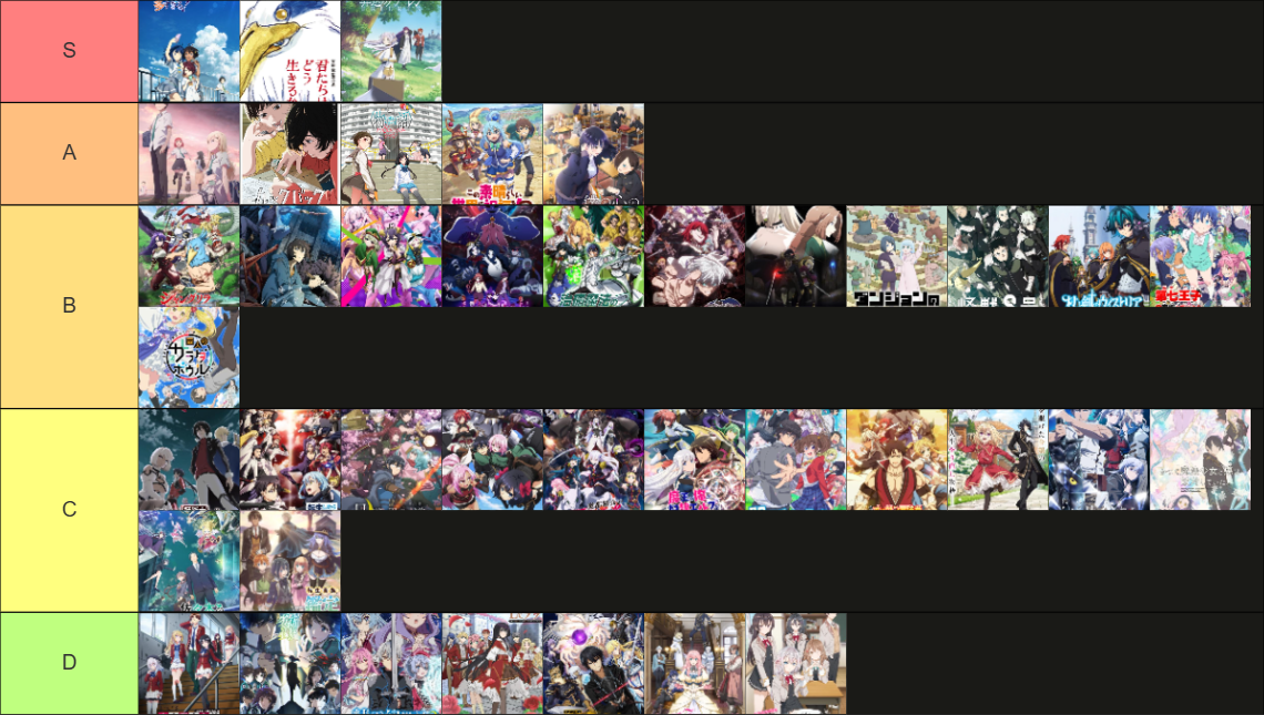 这么一看,今年真是好片没看几部,烂片倒是看了不少。感觉中国的婆罗门们大多都去看少女乐队和高达了,我这种天天看异世界的,确实是被时代抛弃了吧(笑)。异世界动画还真是看的时候不觉得有啥,一复盘怎么看的都是这些东西,希望明年吃点好的吧。